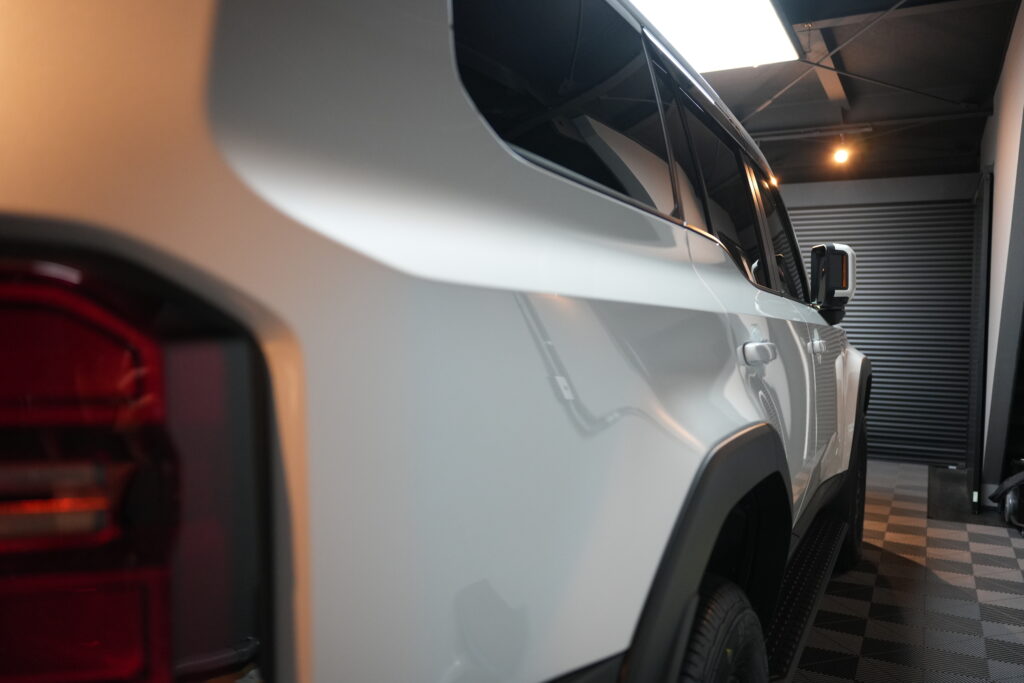 納車されたばかりの新車ということもあり、ボディのコンディションは非常に良好でしたが、より完璧な仕上がりを目指して、まずは下地処理から丁寧に進めていきます。