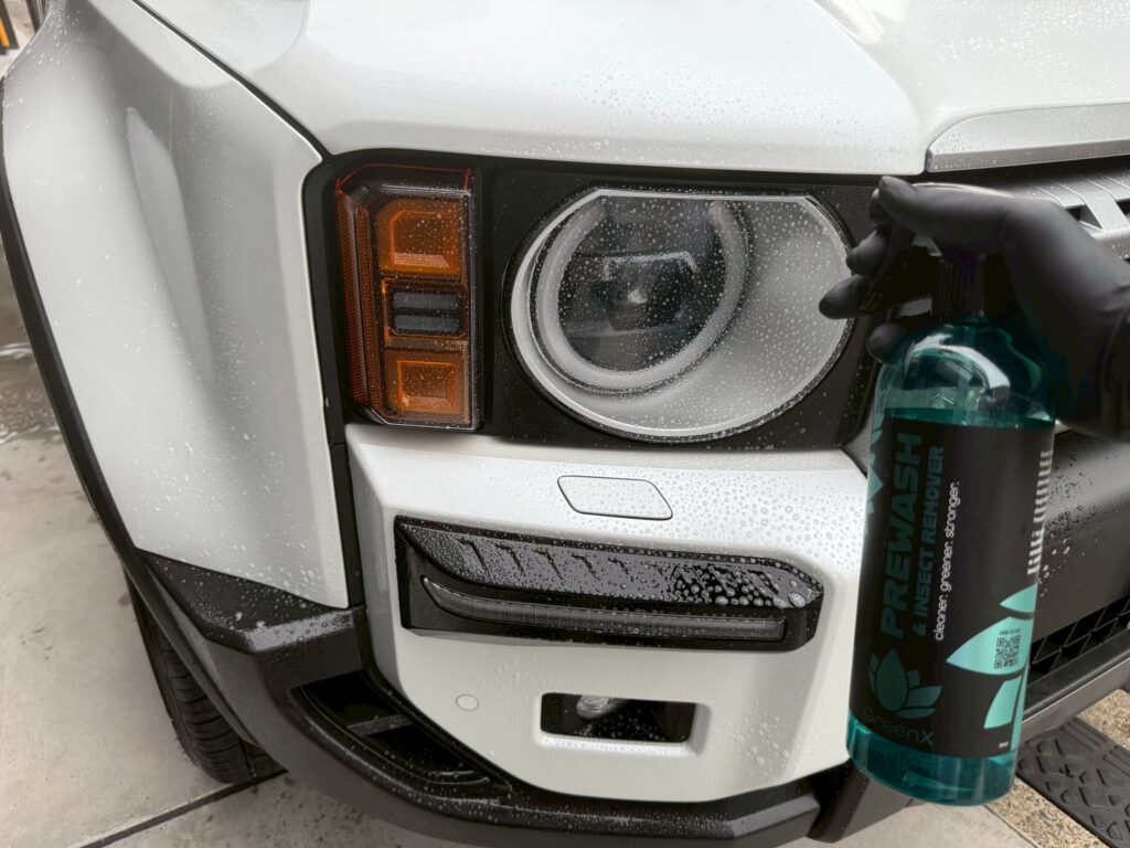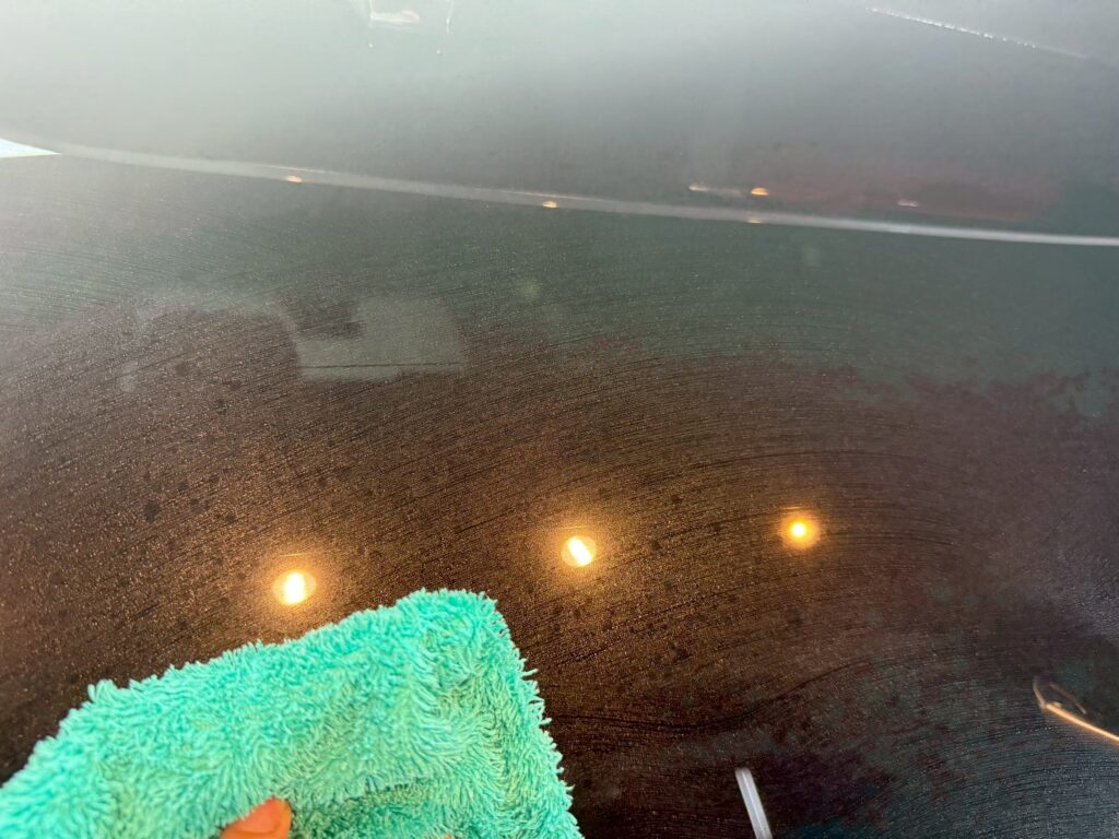 これらのシミは通常の洗車では落としきれないため、酸性タイプのクリーナーを使用し、パネルごとに確認しながら一つひとつ丁寧に処理していきます。