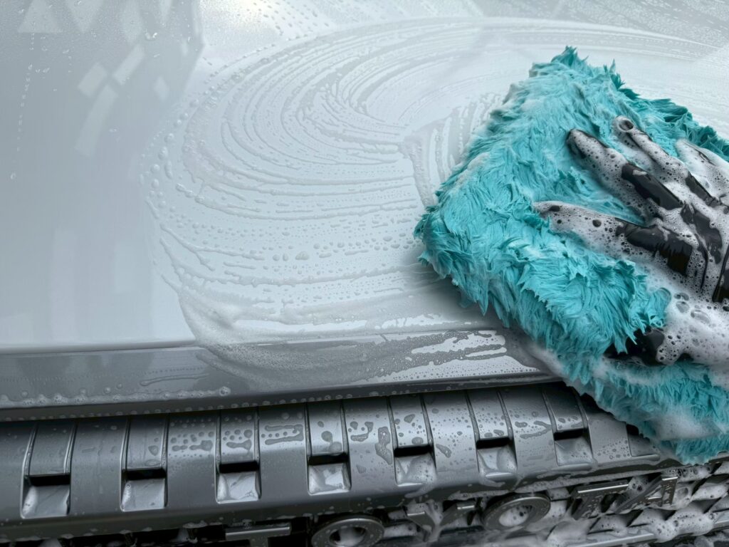 残留成分がボディに残ってしまうと、後のコーティング施工時に密着不良を起こす原因になるため、丁寧に泡立てたシャンプーで全体をしっかり洗浄し、清潔な状態に整えます。