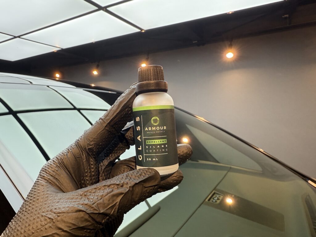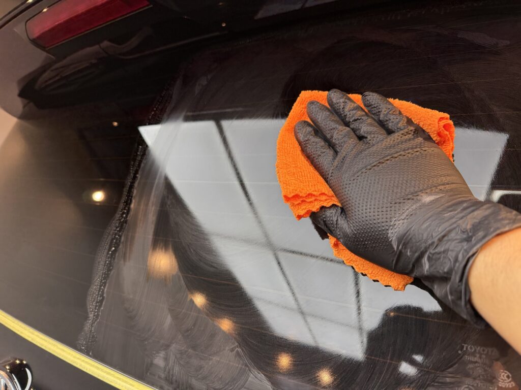 窓ガラスに関してもワイパーを使用するフロントガラスは、念の為3層施工で次回メンテナンスまで効果が持続するように保護します。雨天時の視界を確保できることはもちろんのこと、汚れが圧倒的に付着しにくくなり、当店での必須メニューになります。