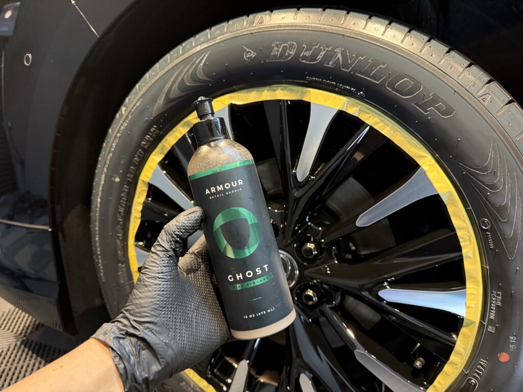 最後にホイールとタイヤコーティングを施工して完了です。ホイールコーティングは耐熱性に優れブレーキダストが付着してもスルッと落としやすくやります。