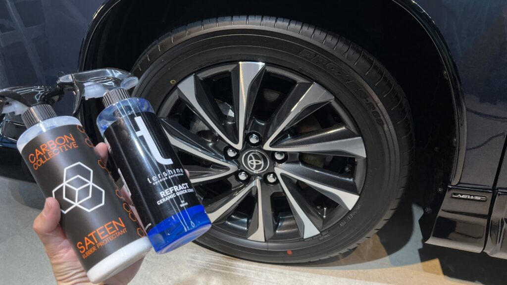 最後にタイヤワックスとホイールコート、樹脂パーツ仕上げ、ステアリングの保護コートをして完成です。